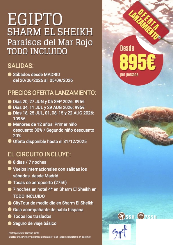 Paraísos del Mar Rojo Sharm el Sheikh en vuelo directo