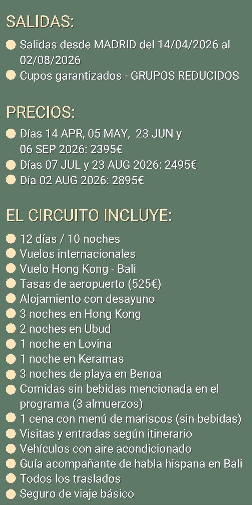 Desde sus templos milenarios hasta sus arrozales infinitos, Bali seduce con una energía única que invita a desconectar, reconectar y dejarse llevar.