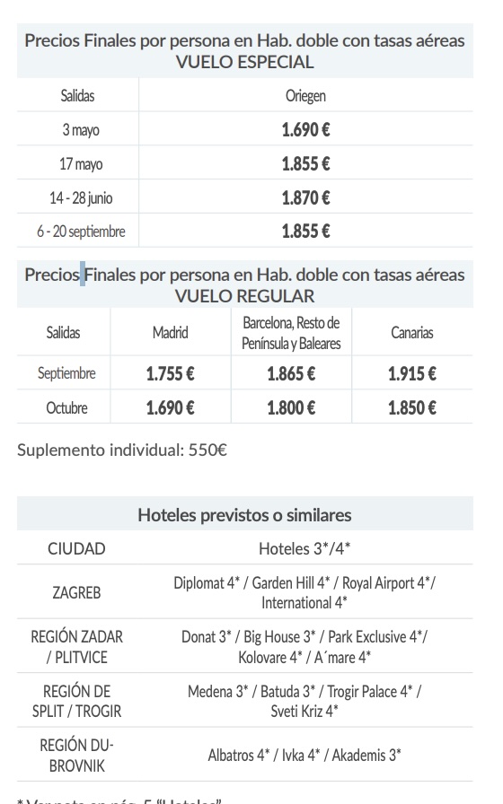 Fechas de salida 2026 COMIENZO POR ZAGREB