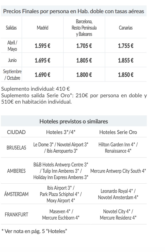 - Visitas guiadas de Bruselas y Ámsterdam.