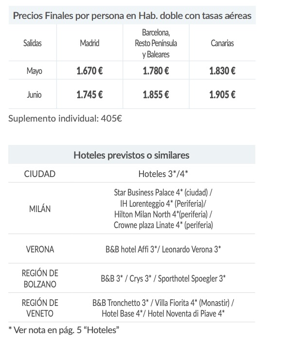 FECHAS DE SALIDA 2026 COMIENZO EN MILAN