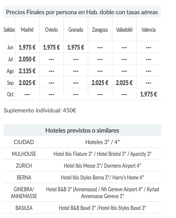 Suiza montañas y lagos salidas desde Oviedo , Granada,Zaragoza, Madrid, Valladolid y Valencia