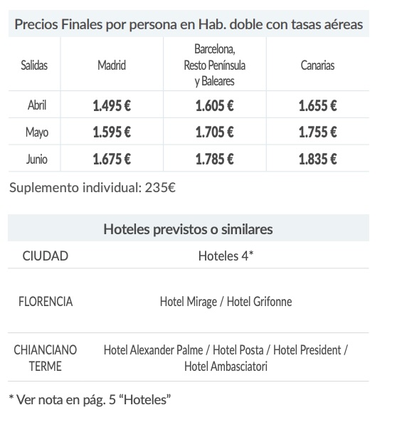 Día 8.- Chianciano Terme - Aeropuerto de Florencia - Ciudad de origen