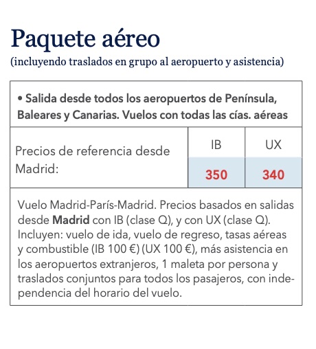 Opción con avión: Presentación en el aeropuerto de salida para embarcar en vuelo con destino París.