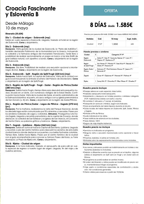 Ultimas plazas para viajes organizados a Europa