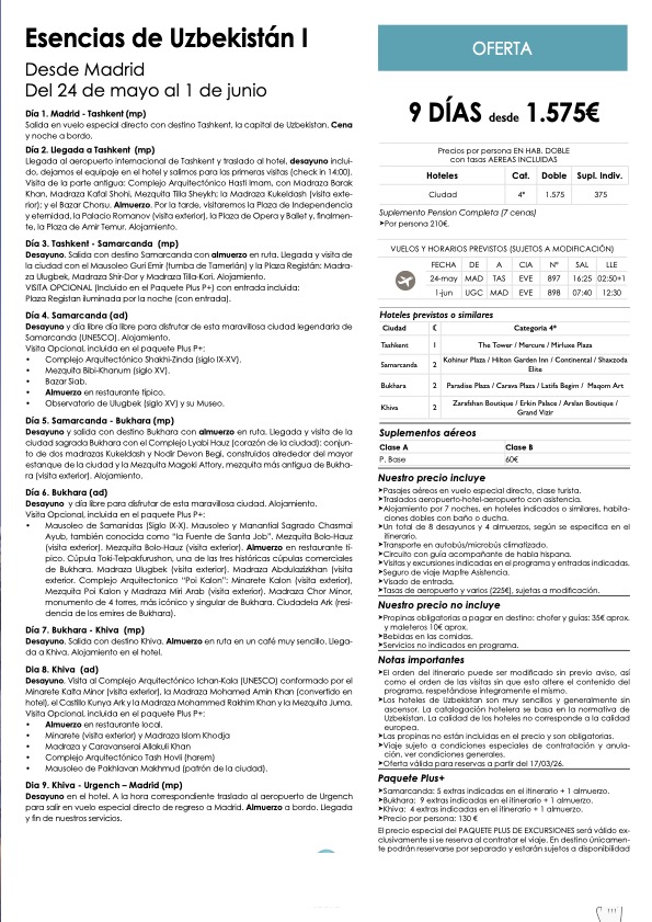 últimas plazas de circuitos organizados por Europa