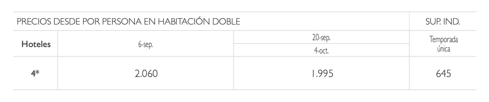 Viaje sujeto a condiciones especiales de contratación y anulación, ver condiciones generales.