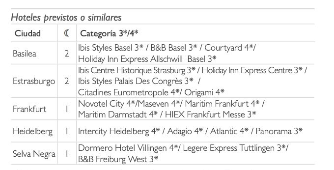 - Visitas de Estrasburgo, Heidelberg y Friburgo.
